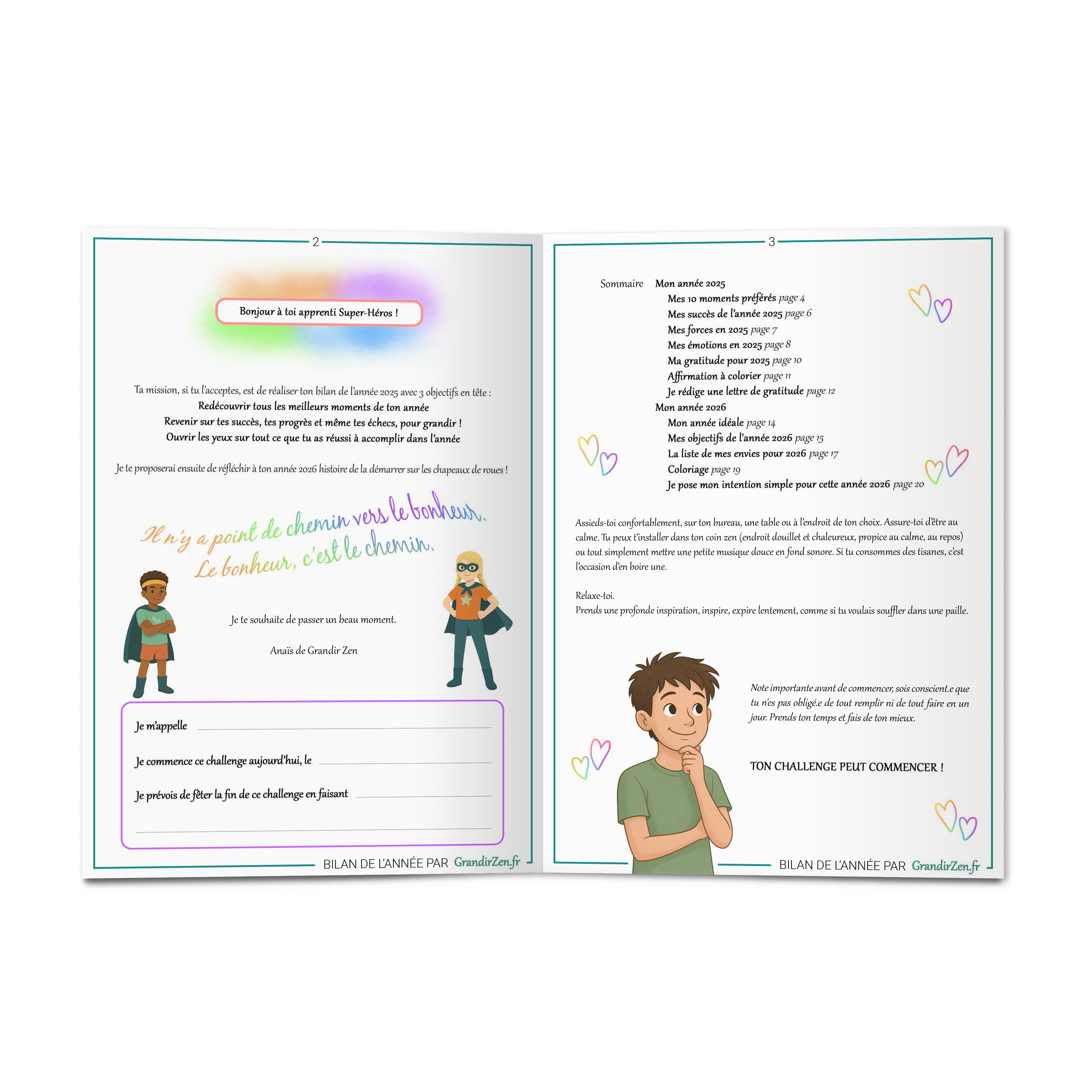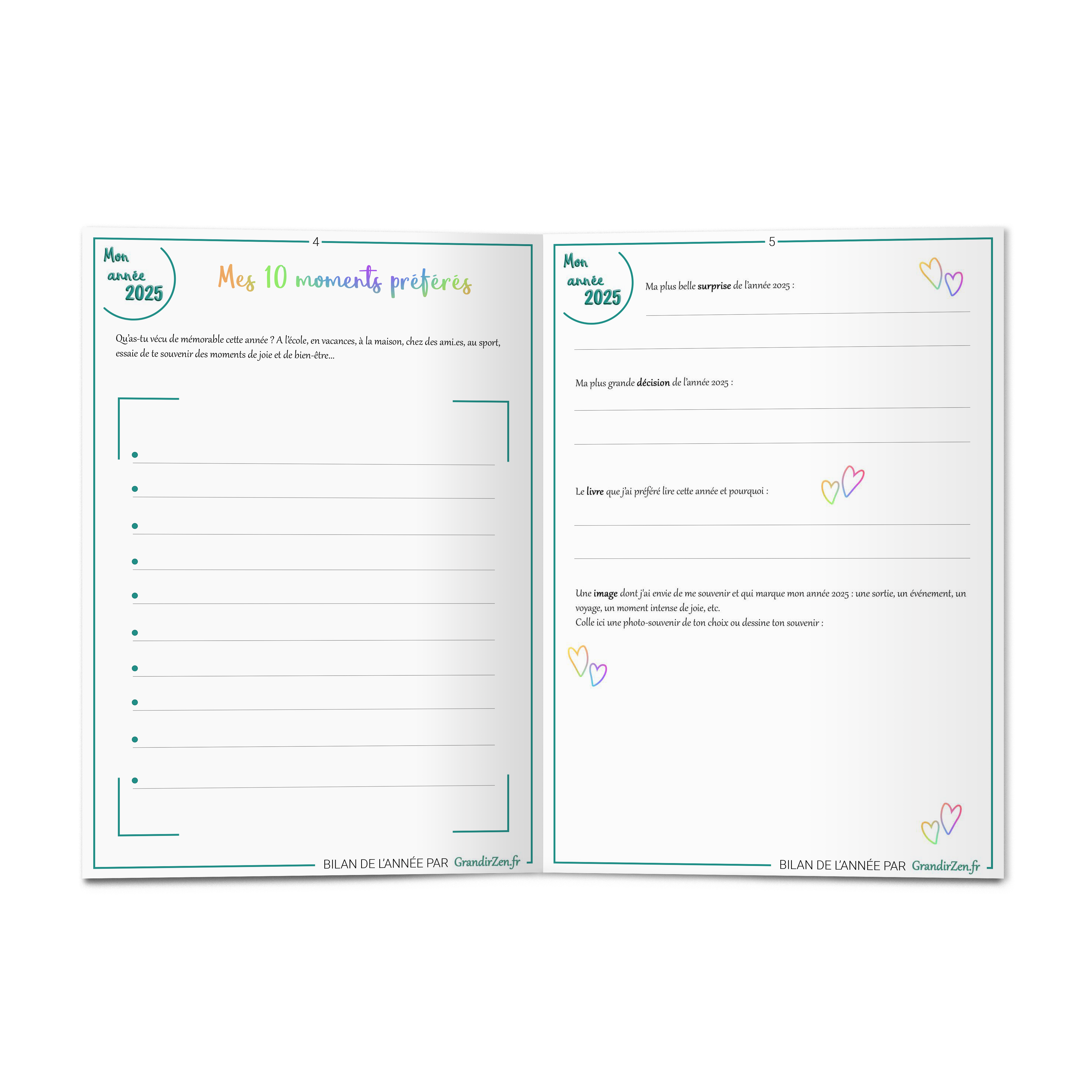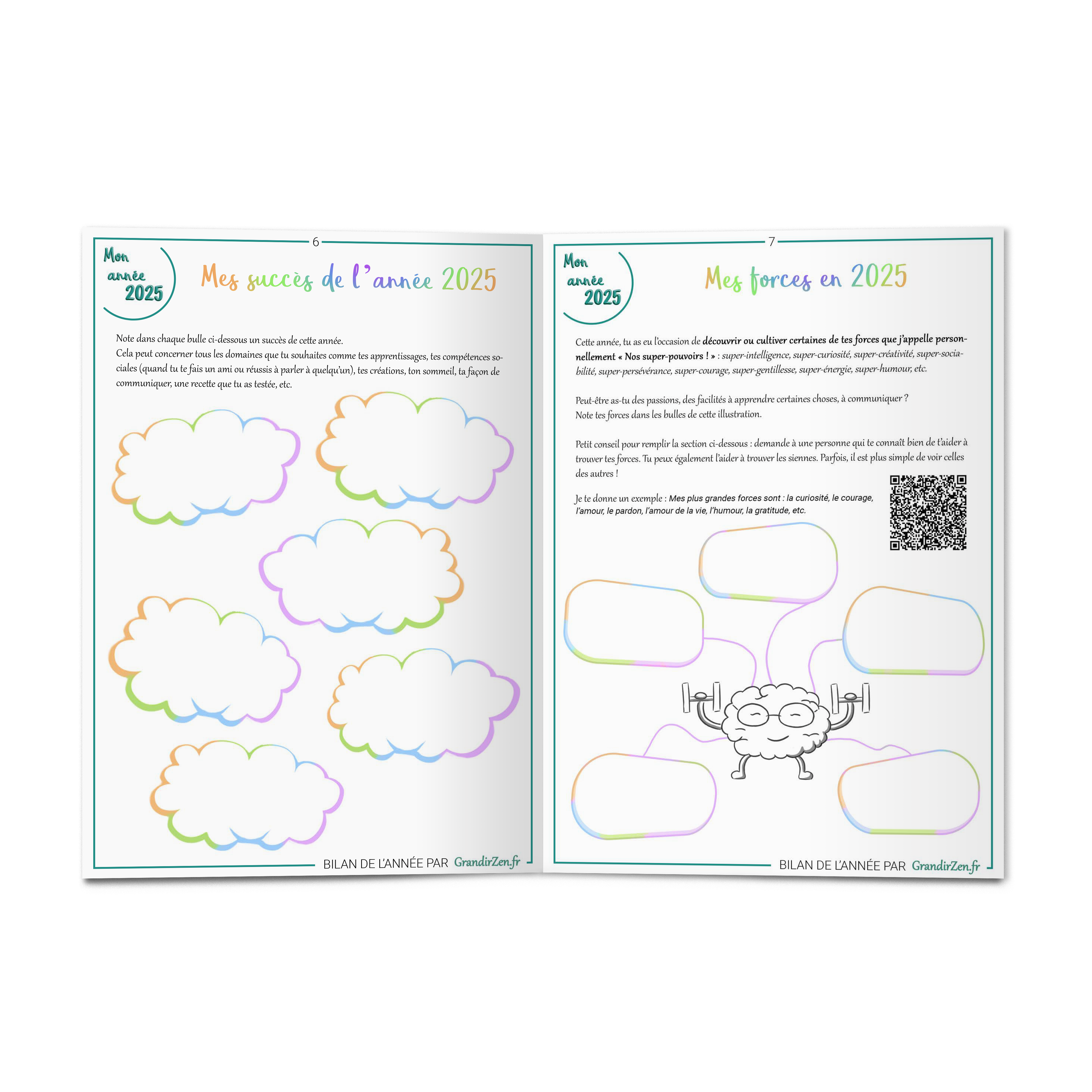 Avec “Mon Bilan de l’année 2025”, tu offres à ton enfant un moment à part : un temps calme pour revoir son année, célébrer ses progrès, comprendre ses émotions et rêver 2026 avec confiance.
