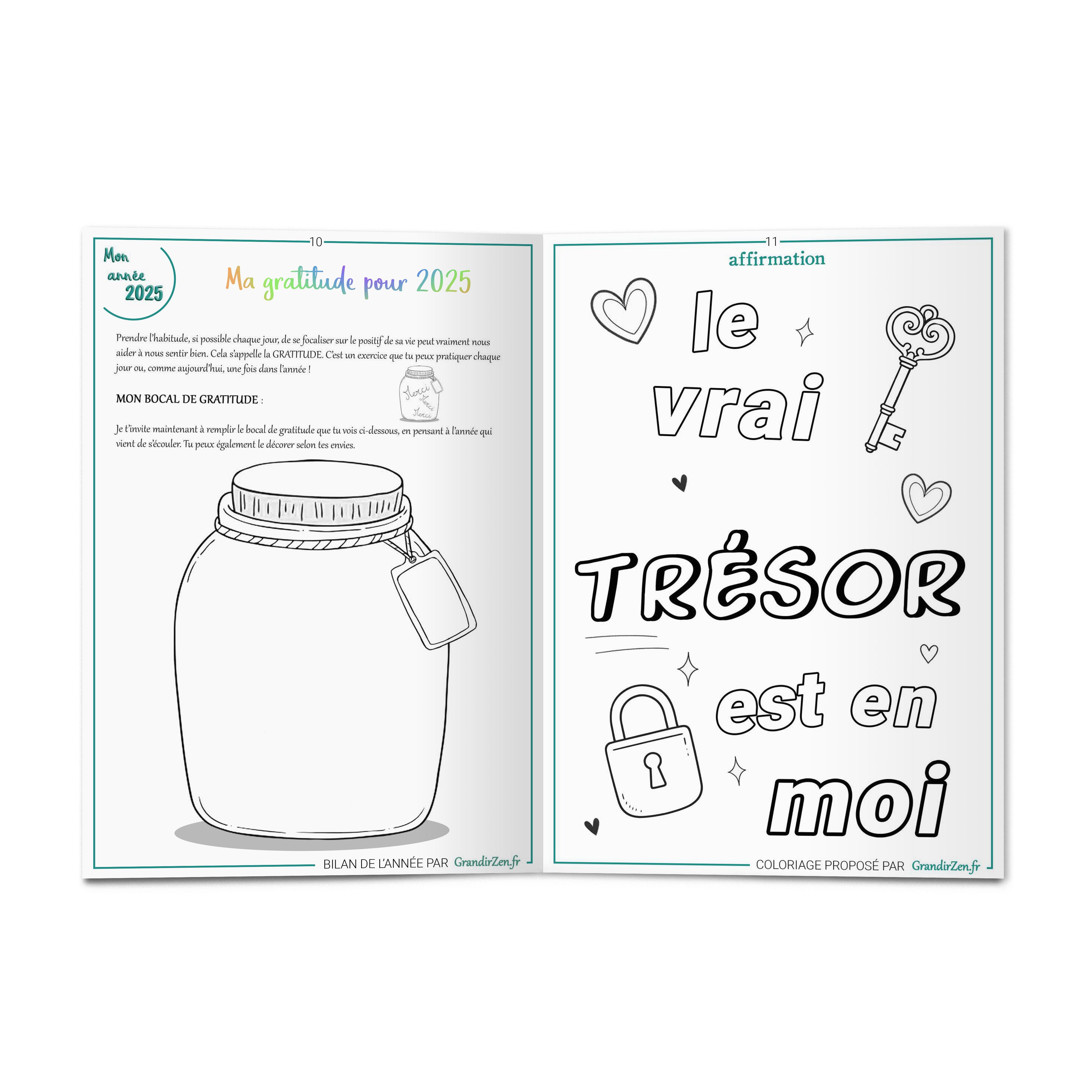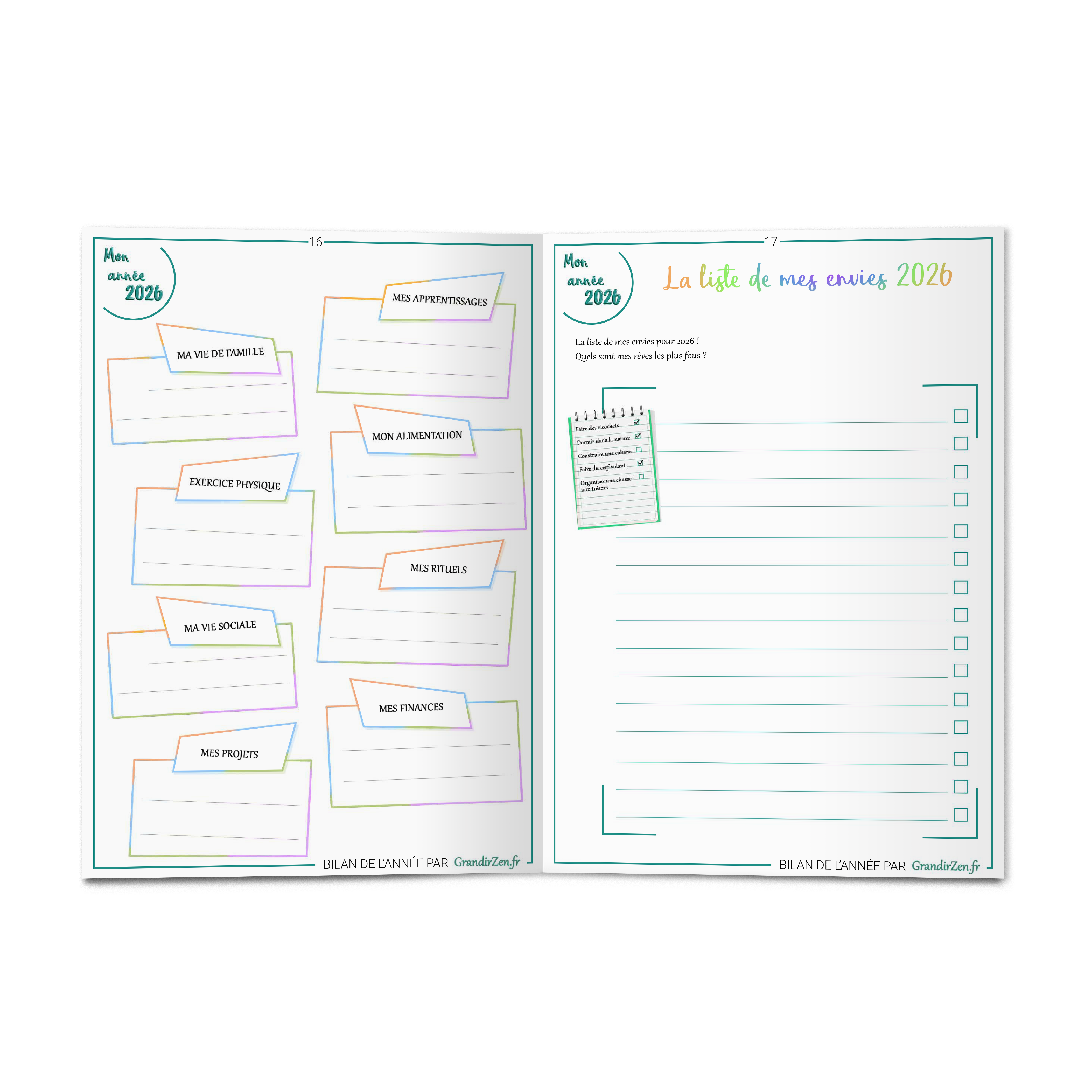 → une phrase-clé qui va guider son année + espace pour dater, signer et célébrer tout le travail réalisé.